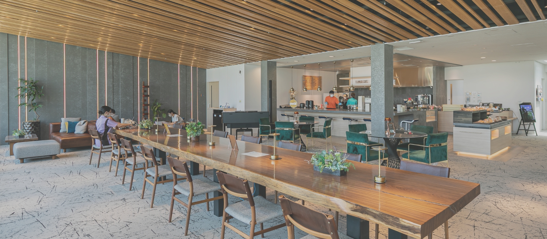 病院内に併設された「つむぎカフェ」は、ご入居者さまとご家族がゆったりと過ごせるカフェスペースです。